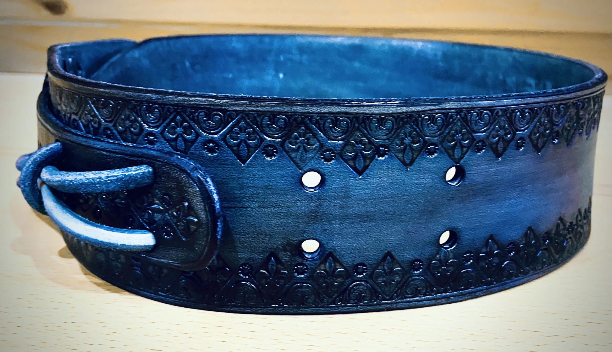 - Následuje barvení lihovými barvami nebo zdobení raznicemi a speciálním nožem, tzv. swivel knife. Tyto dva kroky střídám podle toho, jak by měl výsledný výrobek vypadat.